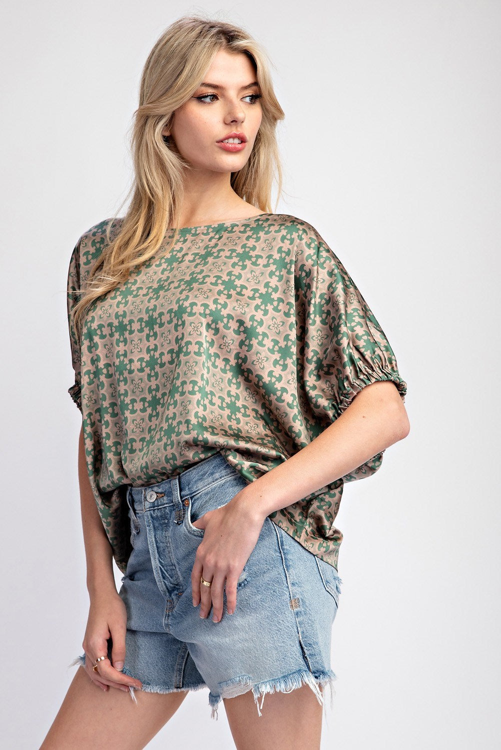 Floral Satin Dolman Sleeve Top