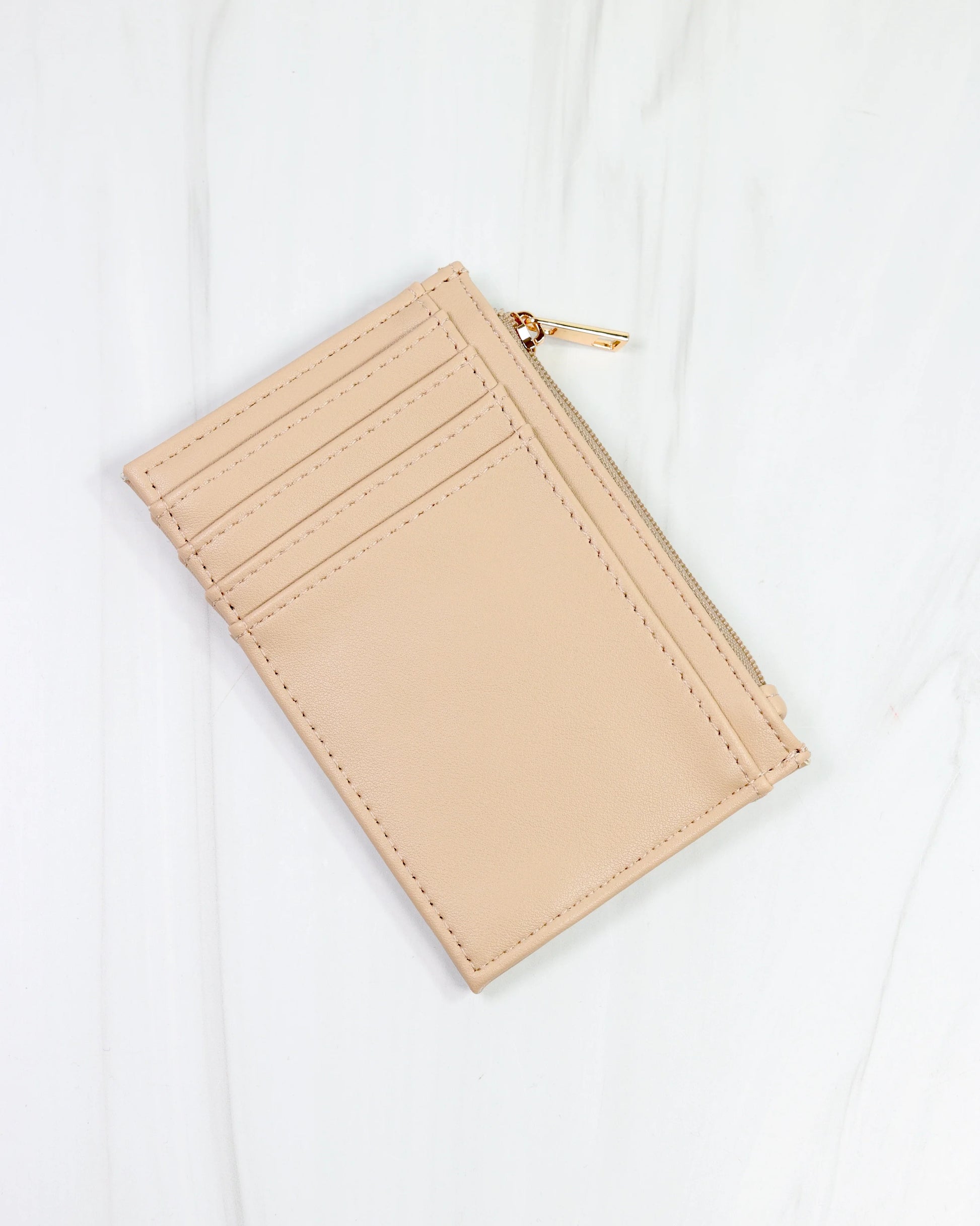 The Molly Zip Card Holder in Nude is a stylish and practical accessory designed for effortless organization. Featuring cardholders on both the front and back, plus a secure zip pocket in the center, it keeps your essentials neatly arranged while complementing your fashionable look. Perfect for those who value both function and chic simplicity.