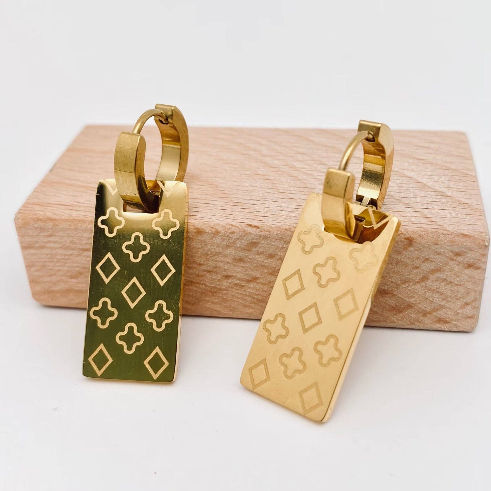 Rectangular Printed Pattern 18K Gold Plated Earrings