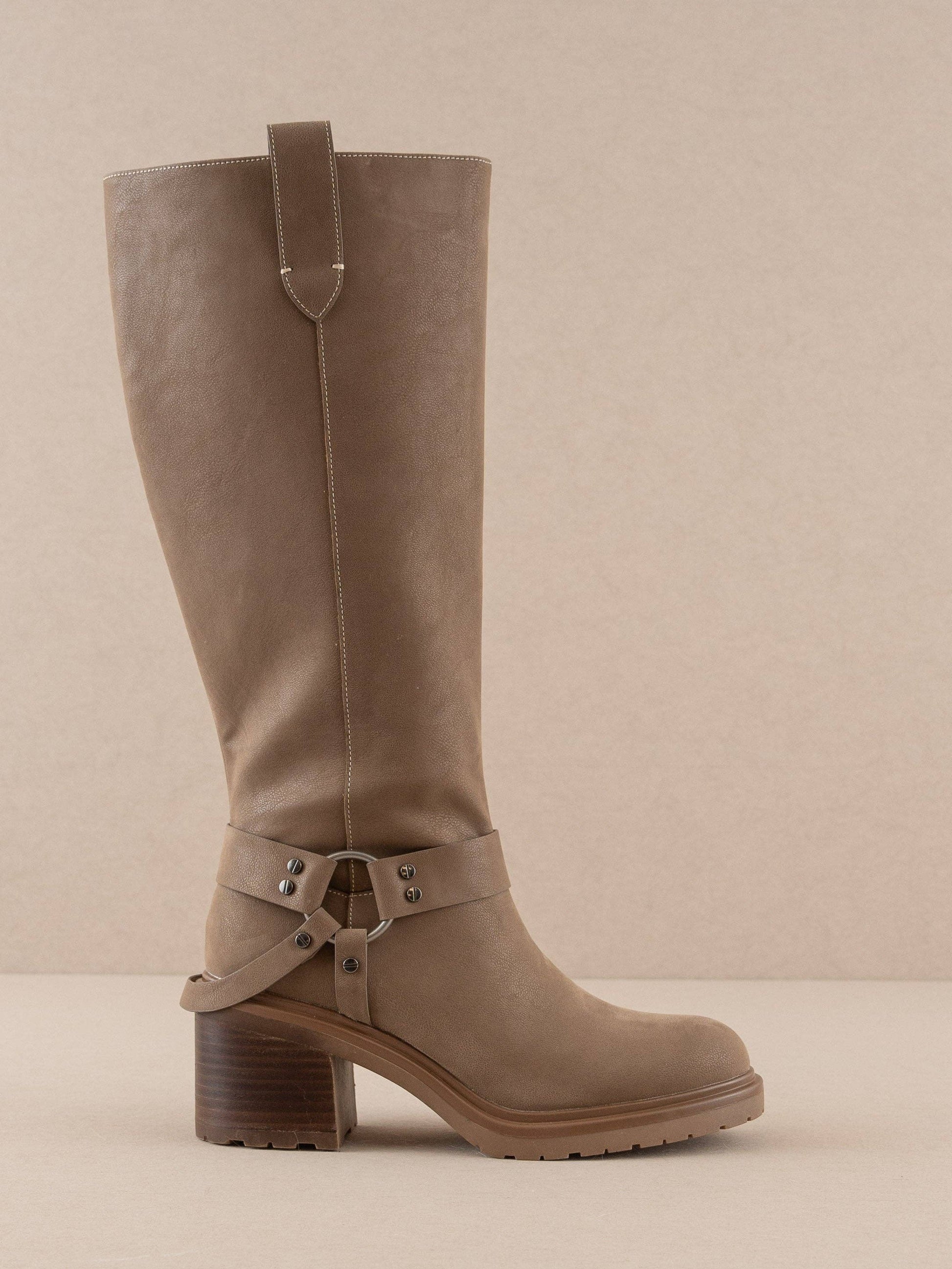 Dark Taupe Moto Knee High Boot